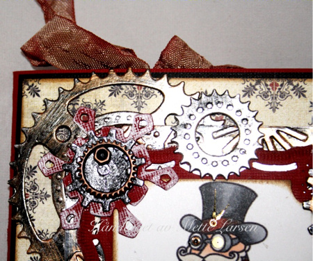 Jeg skal starte med noe jeg skjelden gjør, nemlig litt selvskryt! For første gang i mitt kortmakerliv deltok jeg i en konkurranse med et kort, og det var på Ski-treffet i oktober. Utfordringen var å lage et kort som oste av både steam-punk og julestemning, og tro det eller ei, men jeg vant!! Jeg som aldri har lagd et steam-punk kort i hele mitt liv før.. Her følger en del bilder av kortet, og jeg beklager kvaliteten på enkelte, men det er ikke så lett å ta gode bilder med alt metallet på.